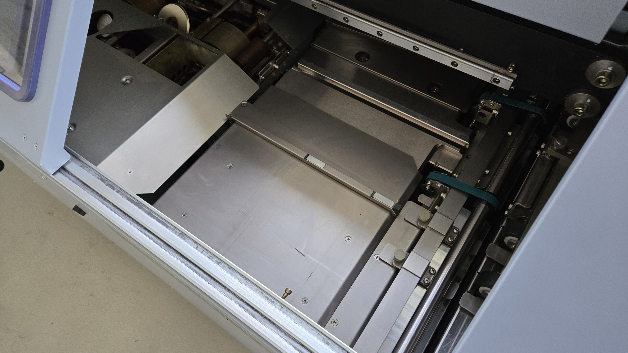 The refurbished 1 clamp binding machine Horizon BQ-270 with EVA adhesive. The machine does not have a large number of glued books. The machine was cleaned, the following parts were replaced – Bearings of the application rollers of the glue tank, oil seal ( gufero), envelope feed tapes, clamping carriage bar. The machine was adjusted and tested.